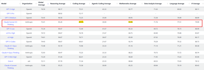 LiveBench: Sonnet 4.5 ranks #4 overall, #1 in Coding and Mathematics