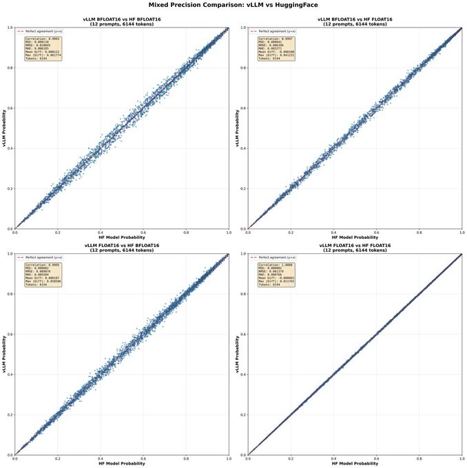 Practitioners argue FP16’s 10 mantissa bits (vs BF16’s 7) reduce policy drift between training and inference in RL fine‑tuning by improving numerical agreement of kernels and absorbing rounding noise practitioner thread. The same thread later corrects the plot source while keeping the core claim intact, underscoring rising interest in precision choices for stability plot correction, with others signaling imminent switches to FP16 in production training loops engineer comment. See the linked paper thread cited in the discussion for additional context on precision trade‑offs ArXiv paper.