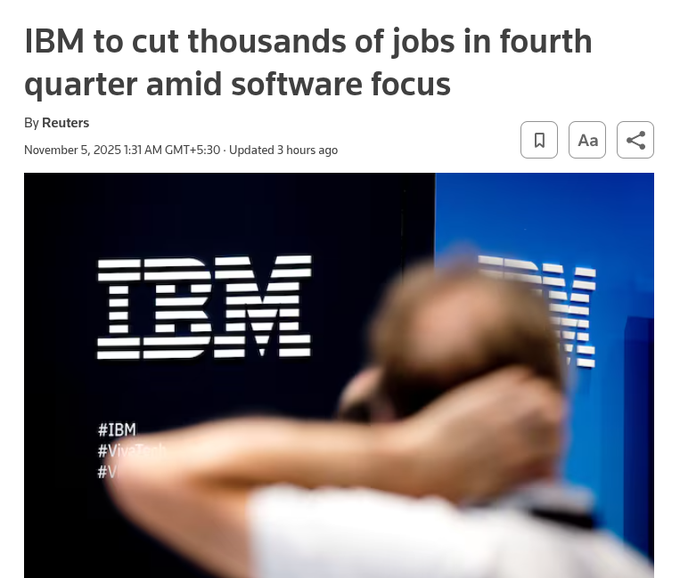 IBM to cut a low single‑digit percent of ~270k roles in Q4 to pivot harder into AI‑software