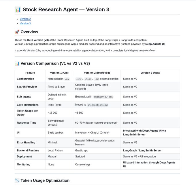LangChain Stock Research Agent V3 adds collab+observability; reports 73% lower costs