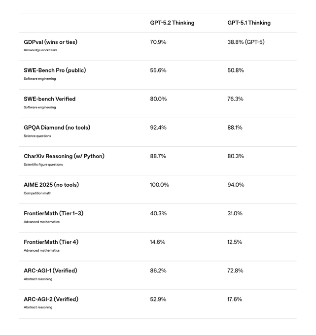 GPT-5.2 Thinking tops most OpenAI, Anthropic, and Google benchmarks