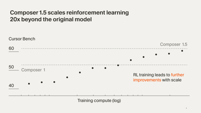 Composer 1.5 claims 20× more RL than Composer 1