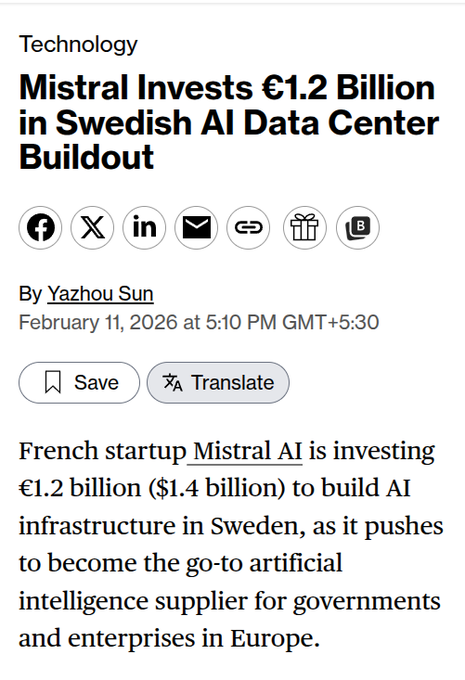 Mistral (Bloomberg via rohanpaul_ai): Mistral AI is reported to be planning a €1.2B AI infrastructure facility in Sweden targeting 2027 operations, positioning for European government and enterprise demand, per the Bloomberg snippet.