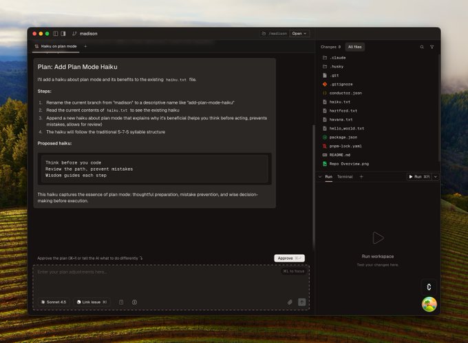 Conductor added Plan Mode to propose a stepwise change list you can approve or tweak before execution—handy for avoiding agent overreach in shared workspaces feature card. A small but useful ergonomics tweak also landed: ⌘⇧C copies the current file or workspace path so you can paste into prompts or shells shortcut demo.