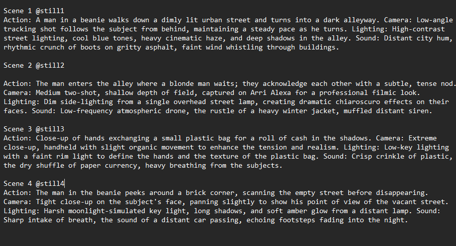 That makes the grid less of a mood board and more of a shot board. Techhalla says the stills stage is the critical part of the process, because those four images become the foundation for the final clip rather than disposable concept frames stills advice.