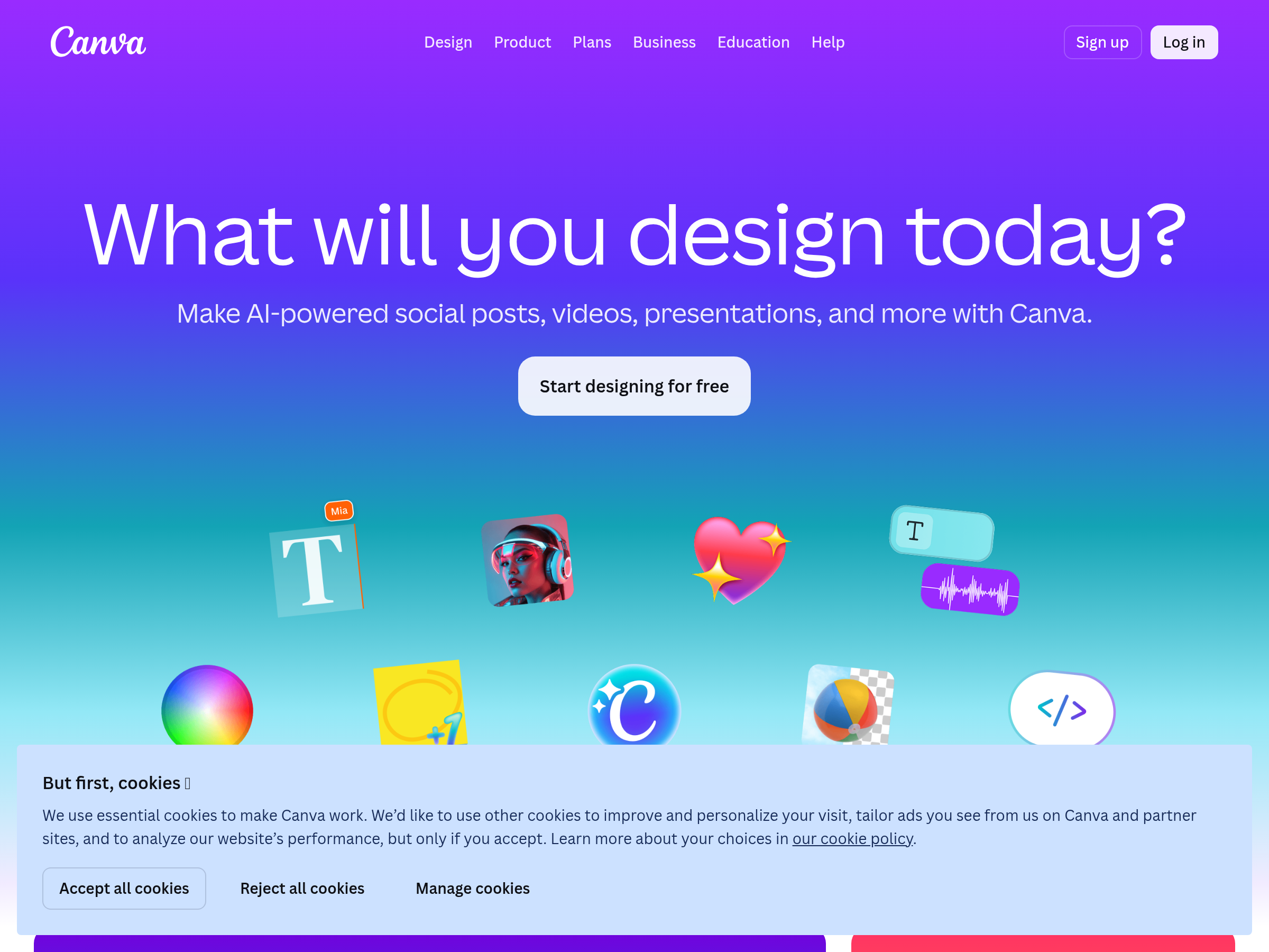 A web-based visual design and communication platform for creating graphics, presentations, documents, videos, and other marketing assets.