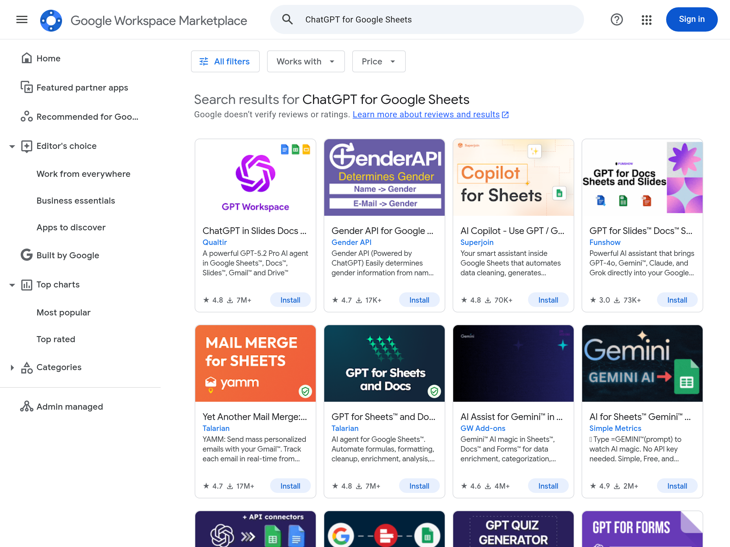 A Google Sheets add-on / spreadsheet helper product that brings ChatGPT-style natural-language assistance into spreadsheets, likely for tasks such as generating formulas, transforming data, and drafting sheet content.