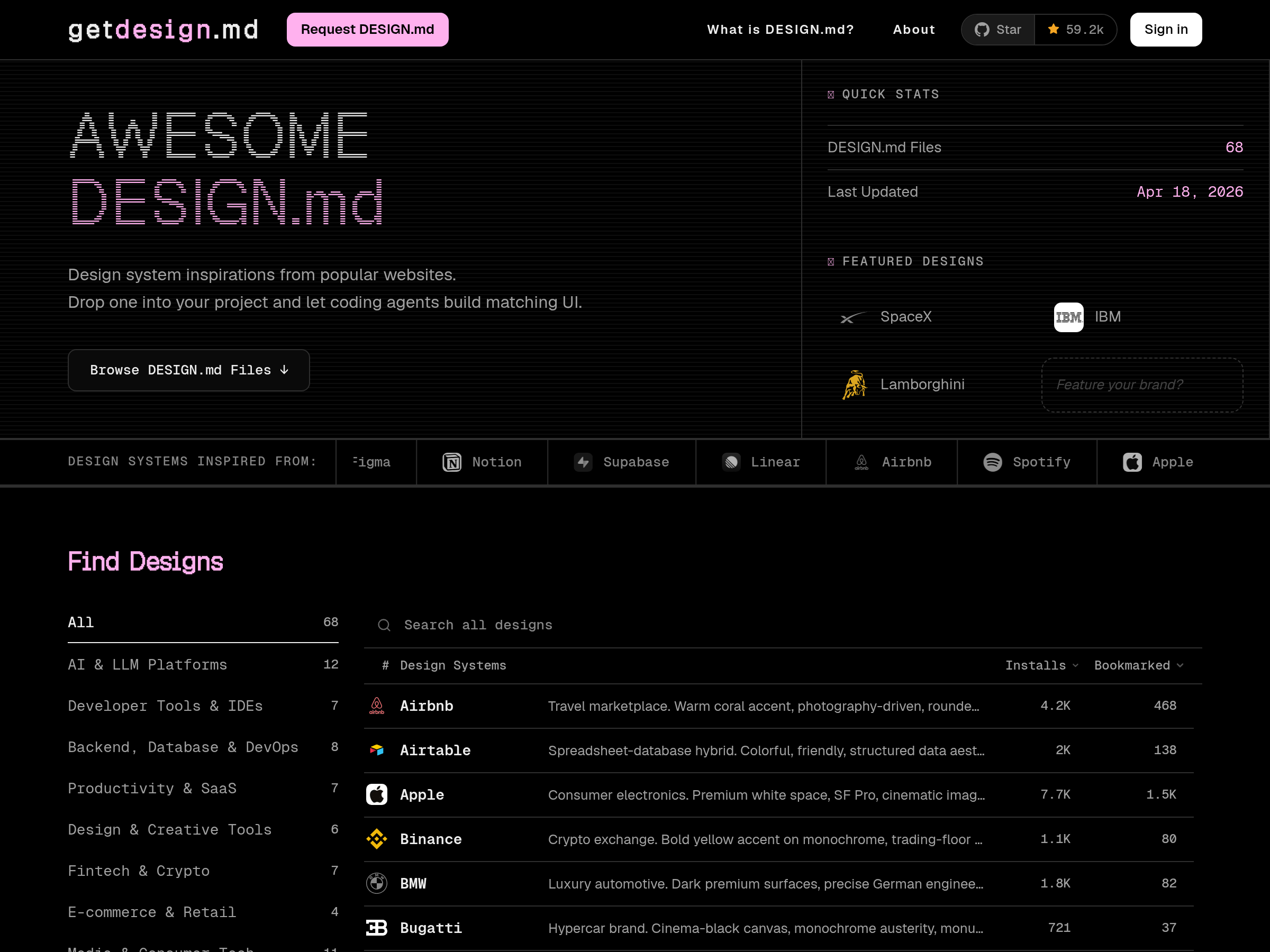 Provisional record for the exact software product named getdesign.md. Exa search and read both returned credit-limit errors, so the product page content could not be verified from source during this run.