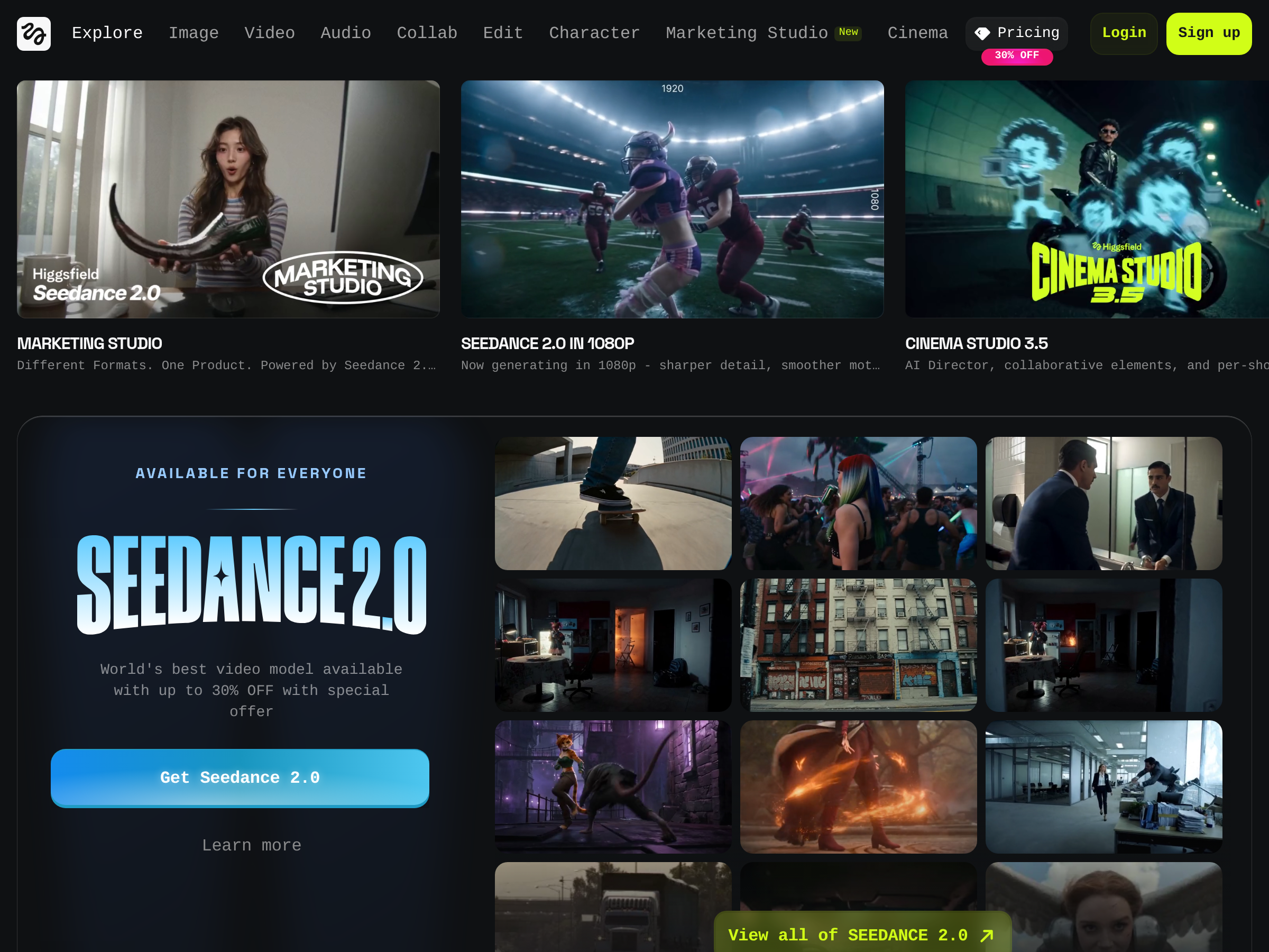A Higgsfield-branded AI video creation product focused on cinematic outputs.