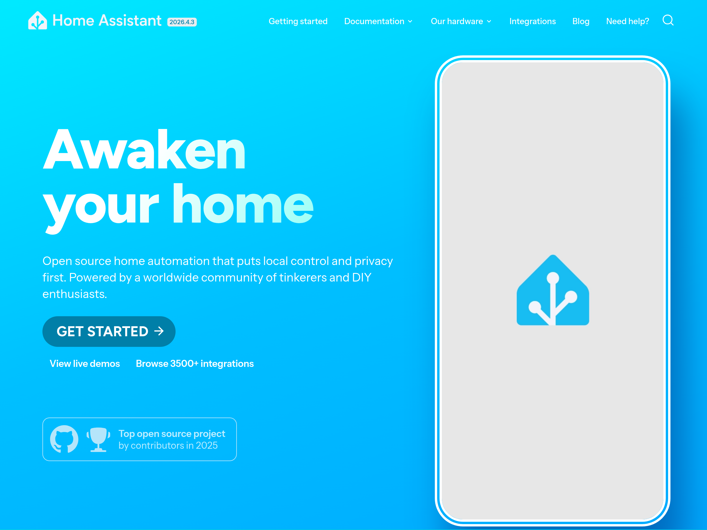 Open-source home automation platform for self-hosted smart home control, with optional paid cloud services for remote access and voice assistants.