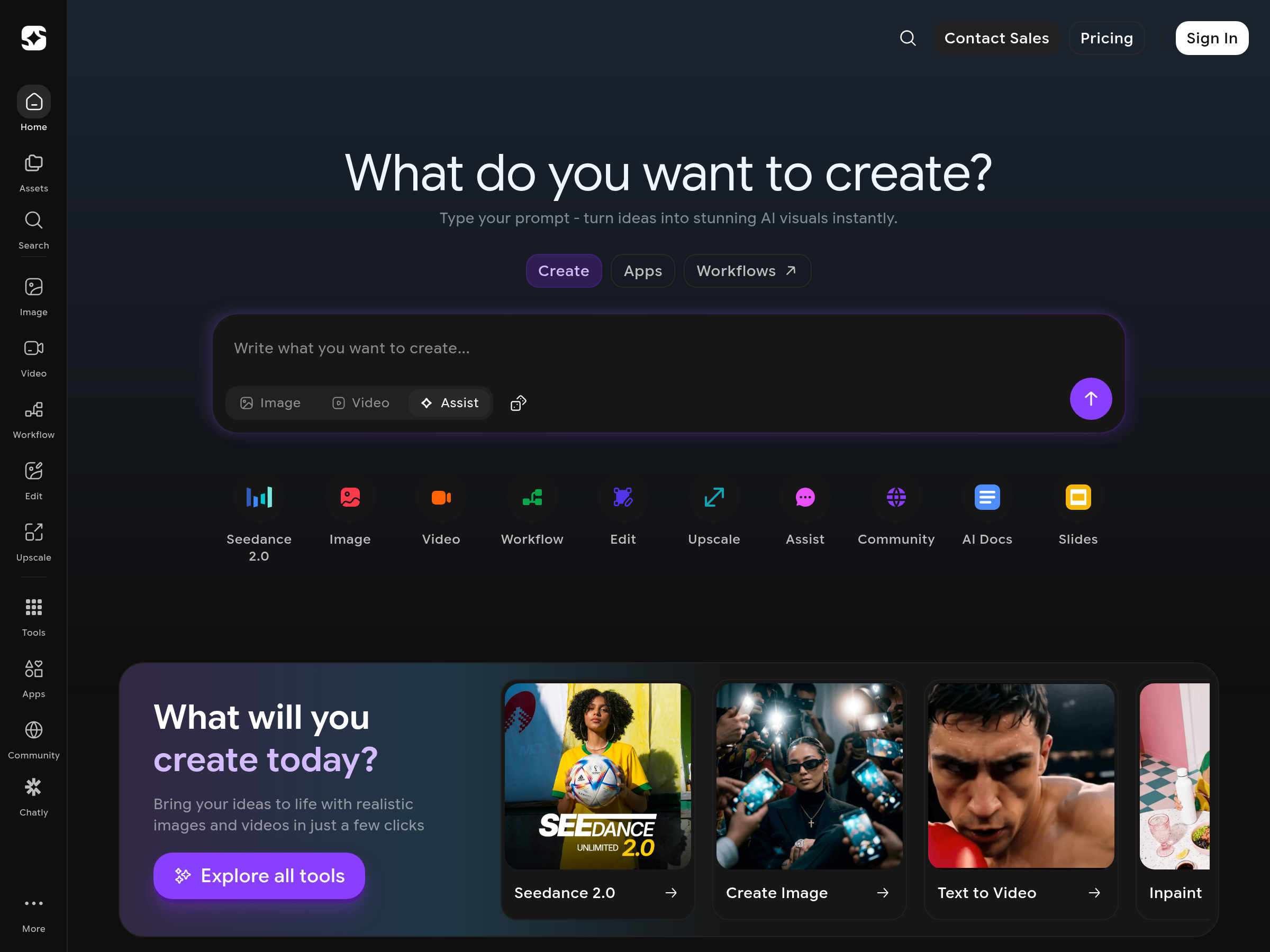 An AI creative platform for generating and editing visual content.