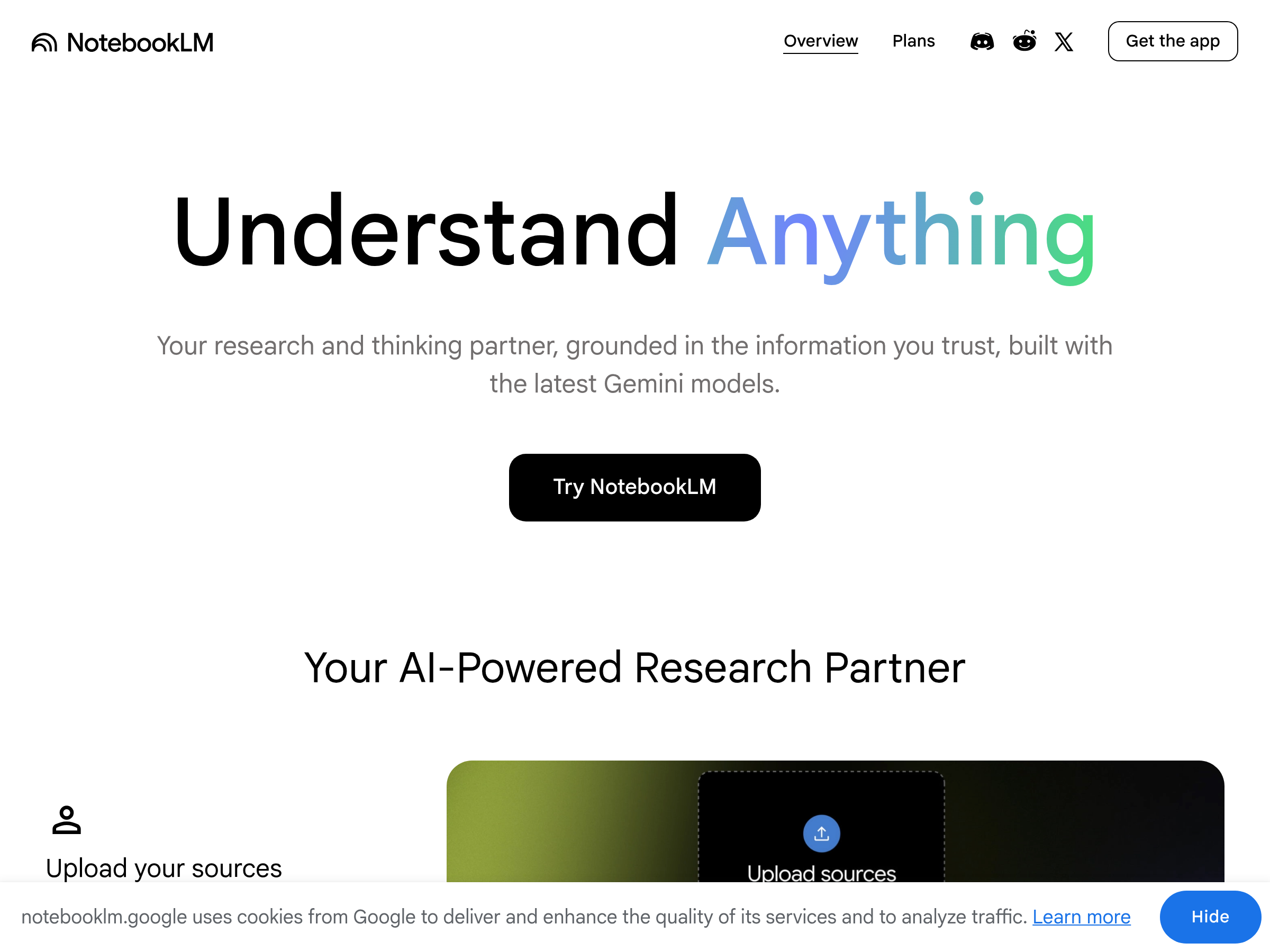 Google’s AI note-taking and research assistant that lets users work from uploaded or linked sources and ask grounded questions.