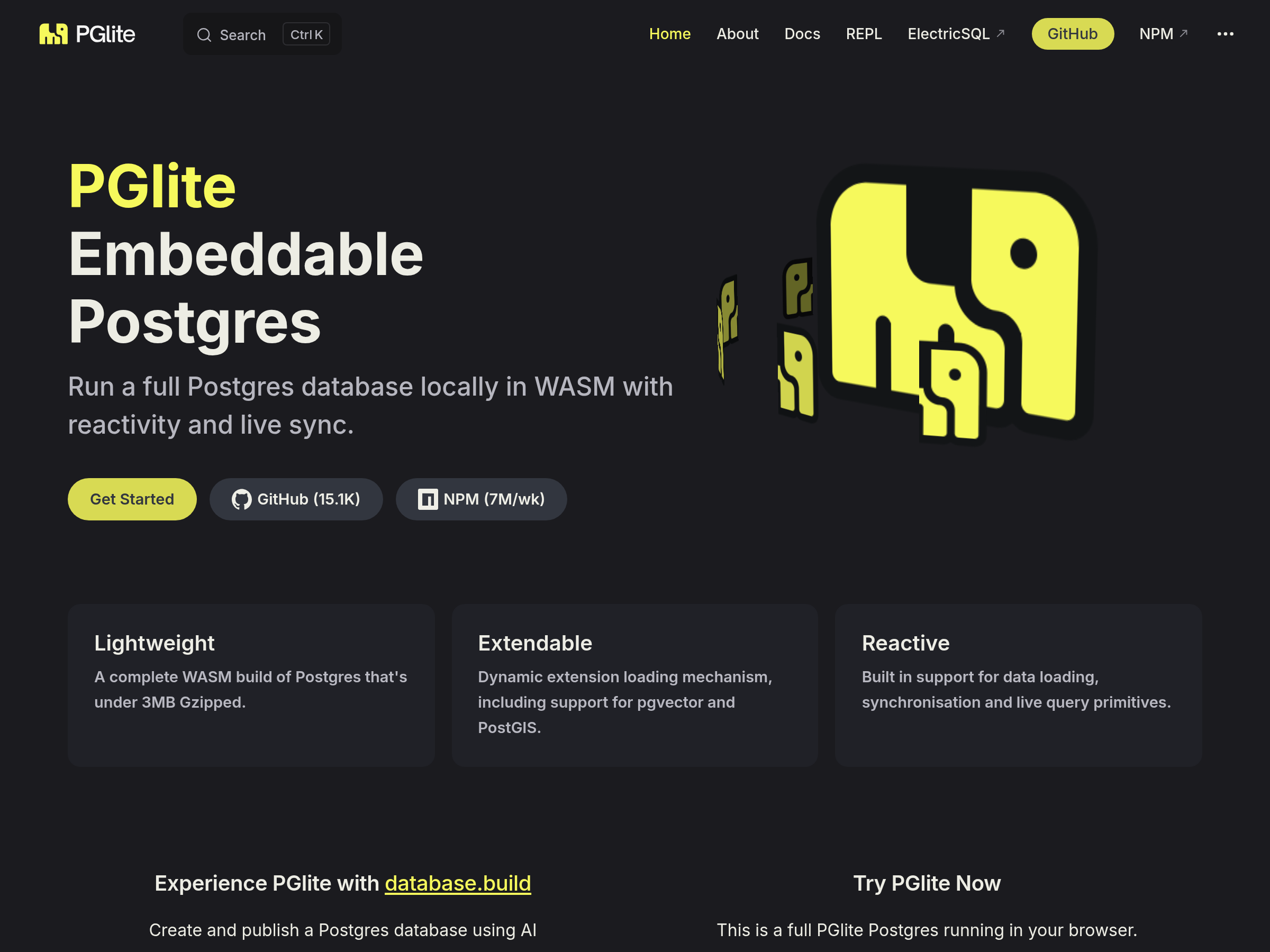 An embeddable PostgreSQL implementation that runs locally in the browser and Node.js using WebAssembly.