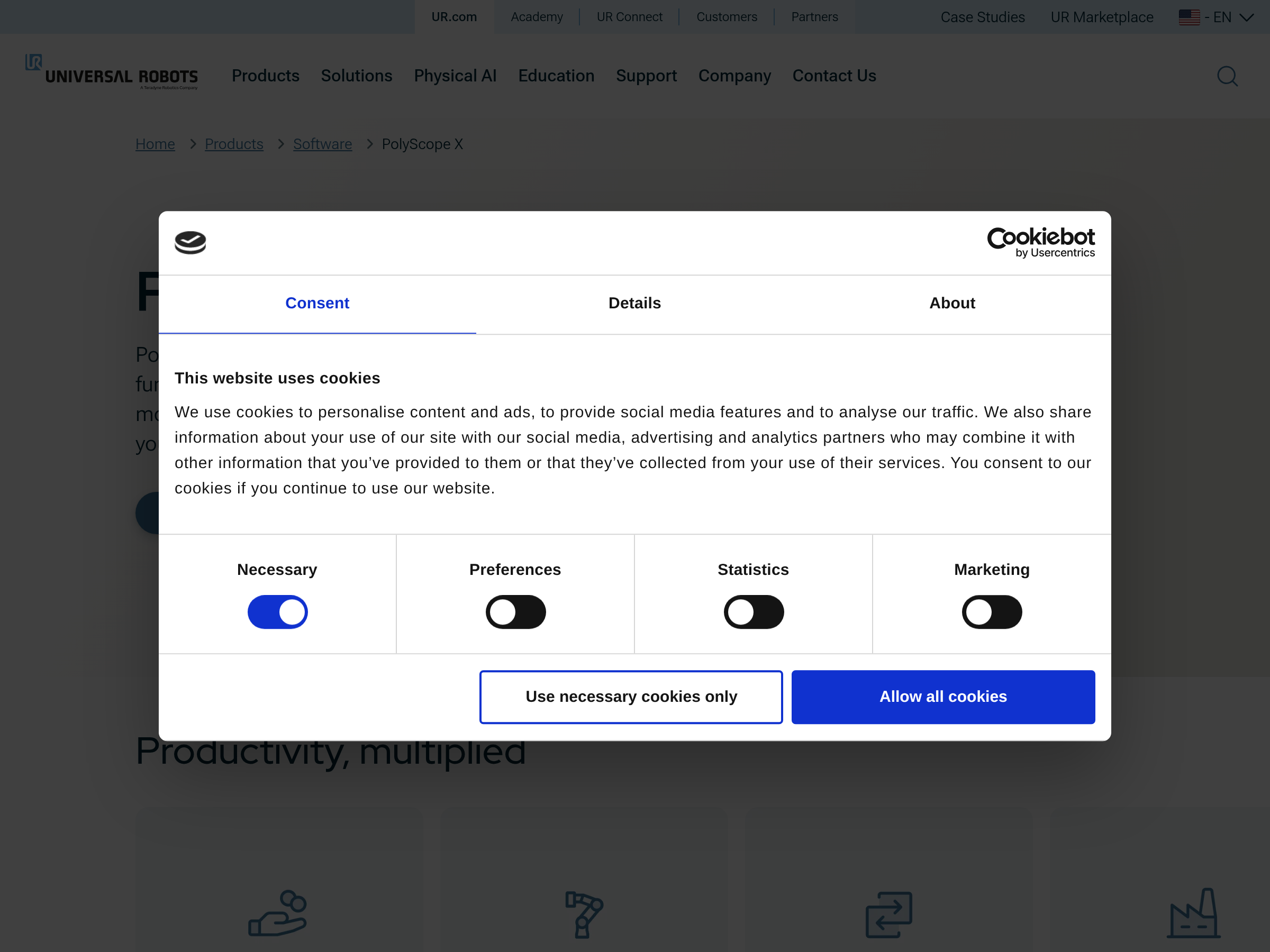Universal Robots' robot programming and control software for collaborative robots.