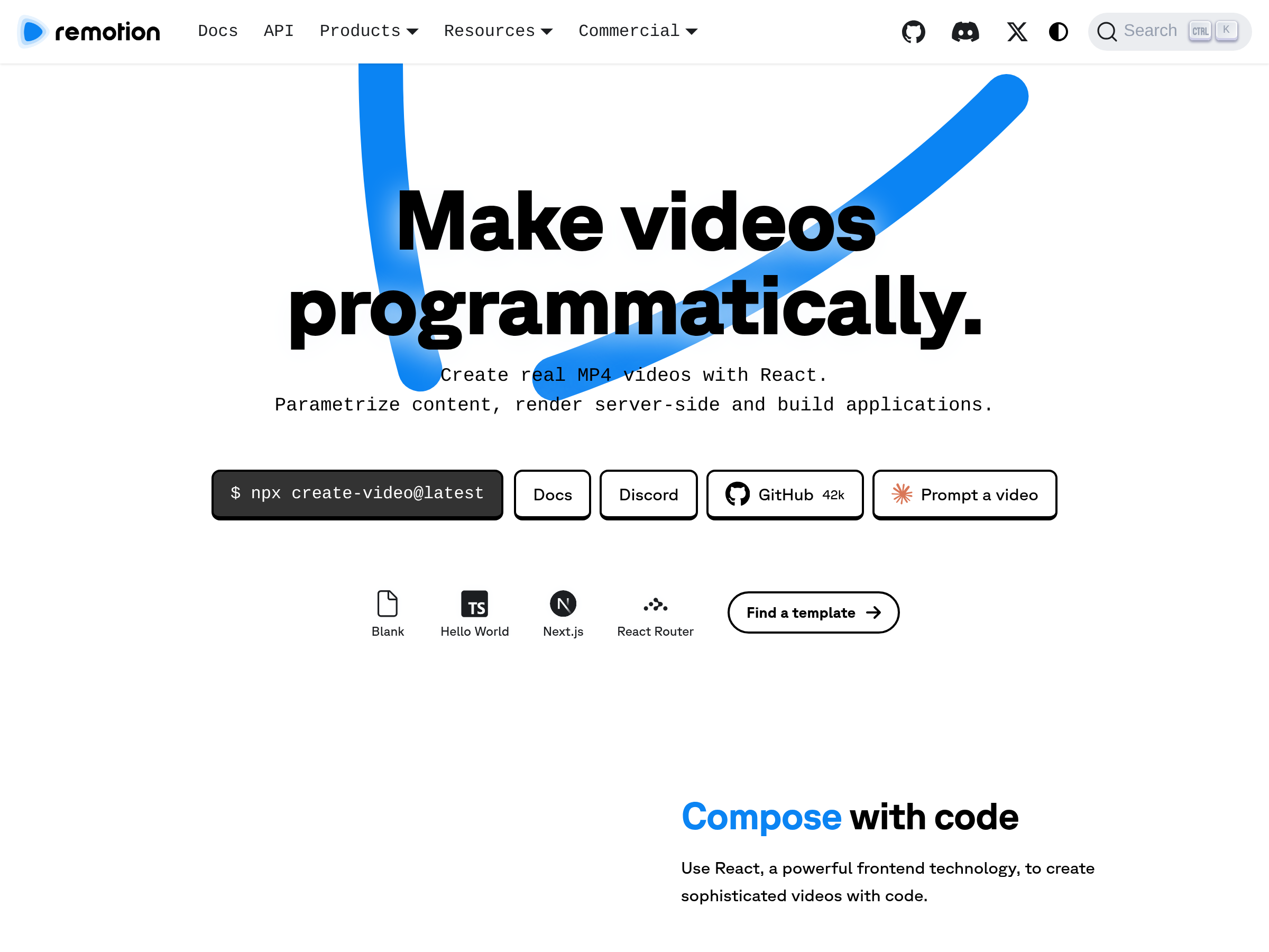 A React-based video creation framework and rendering platform for building videos programmatically.