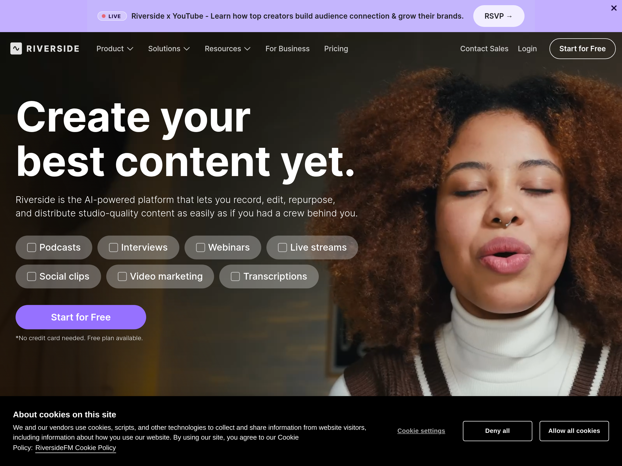 Remote recording, livestreaming, and editing platform for podcasts, interviews, and other video content.