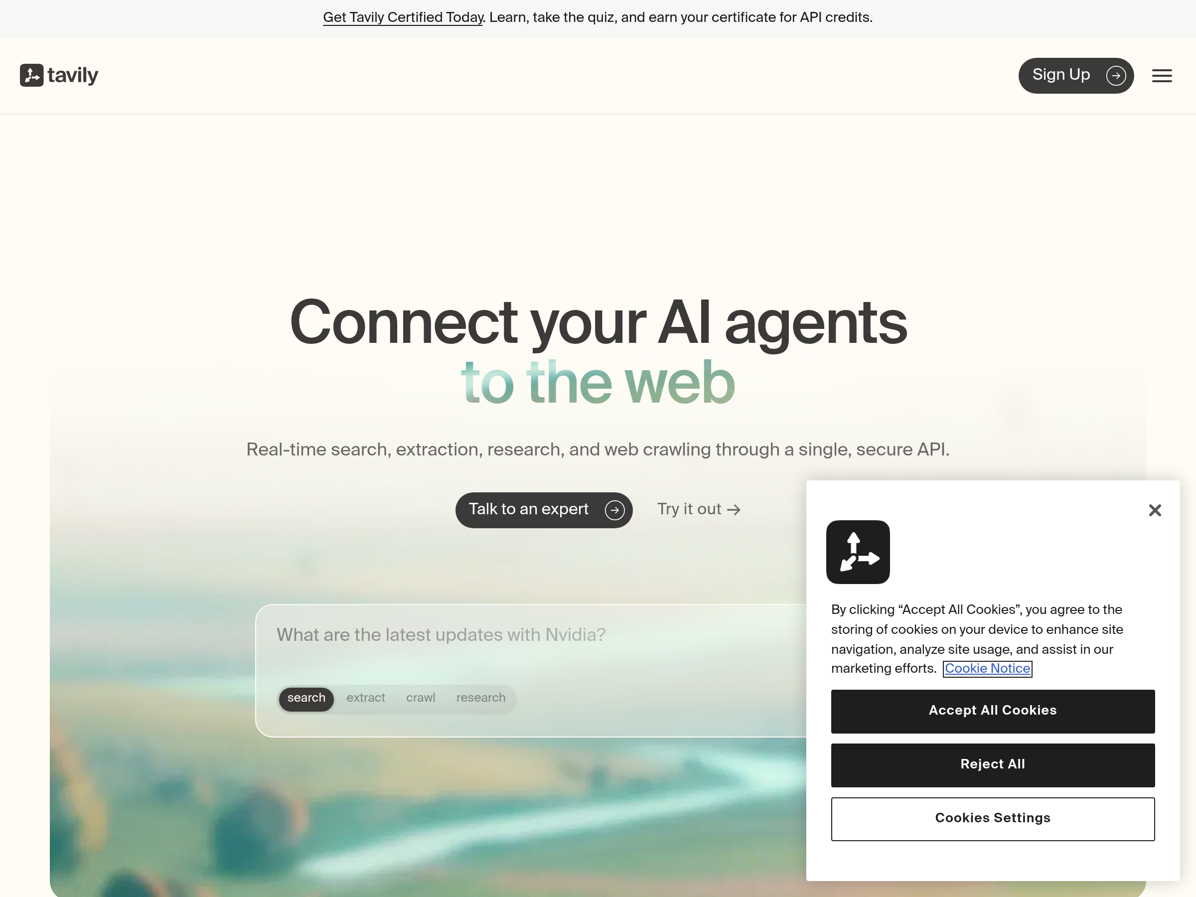 An AI-native web search and research product that returns live web results, source links, and extracted content for LLM applications and agents.